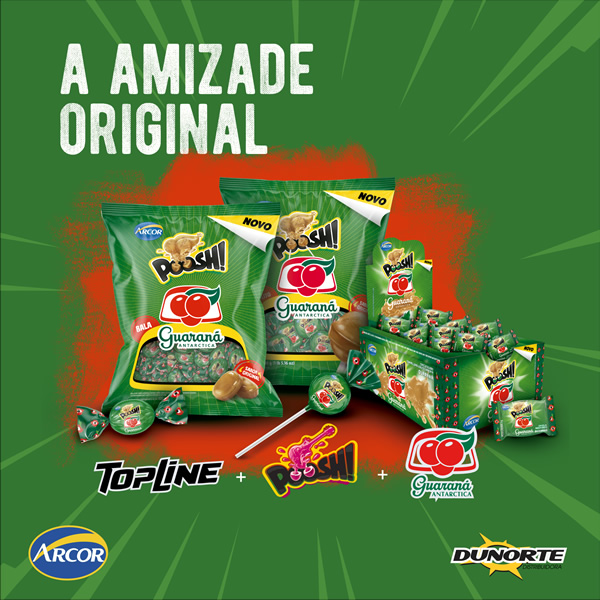 A Arcor, uma das maiores empresas de alimentos do mundo, em ação de co-branding inédito com o Guaraná Antarctica, amplia o seu portfólio de guloseimas e lança no mercado nacional o Poosh! Guaraná Antarctica. A novidade, disponível nas versões chicle, bala e pirulito, conta com a expertise da Arcor no mundo das guloseimas e o autêntico sabor do refrigerante brasileiro.